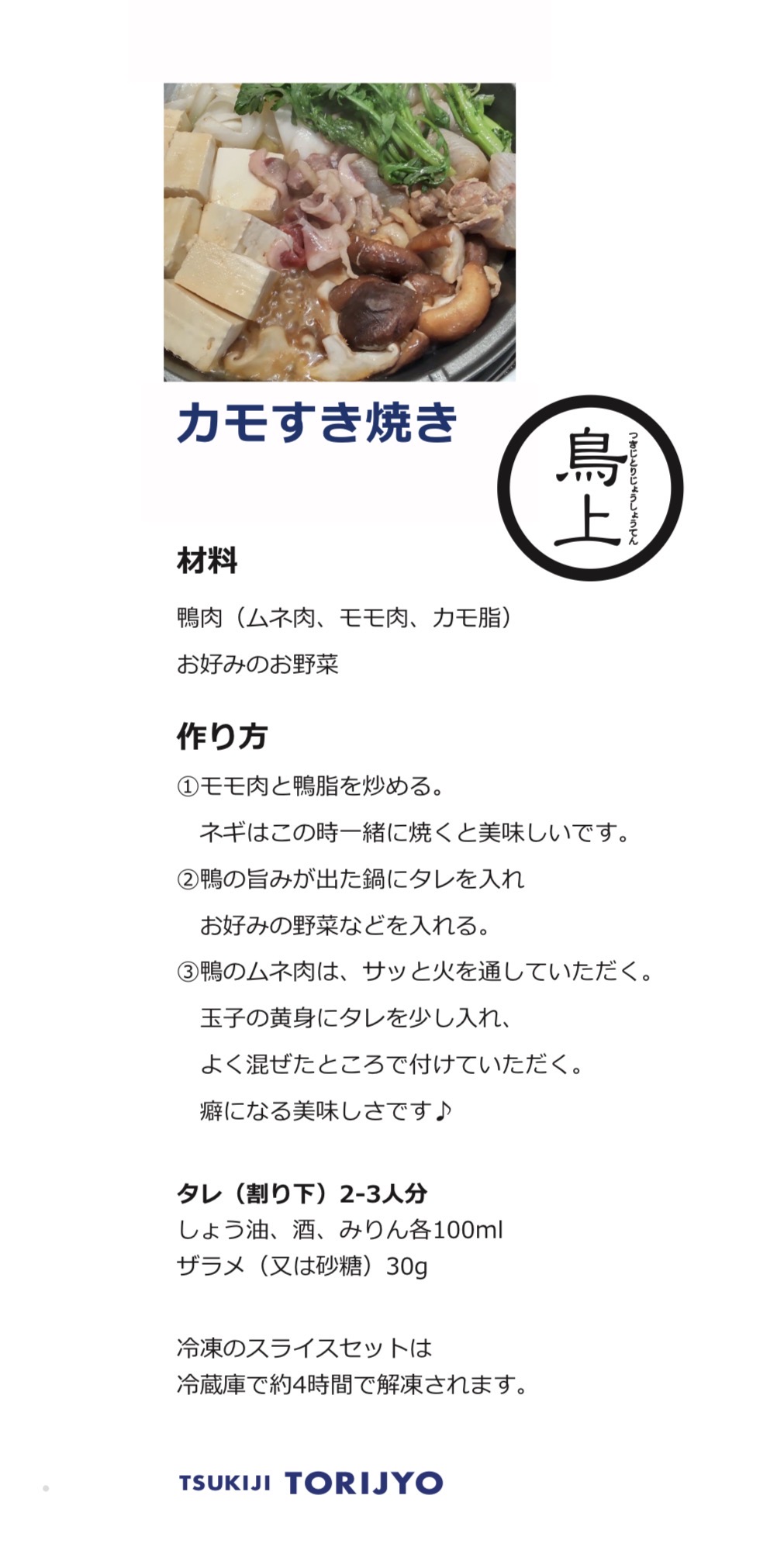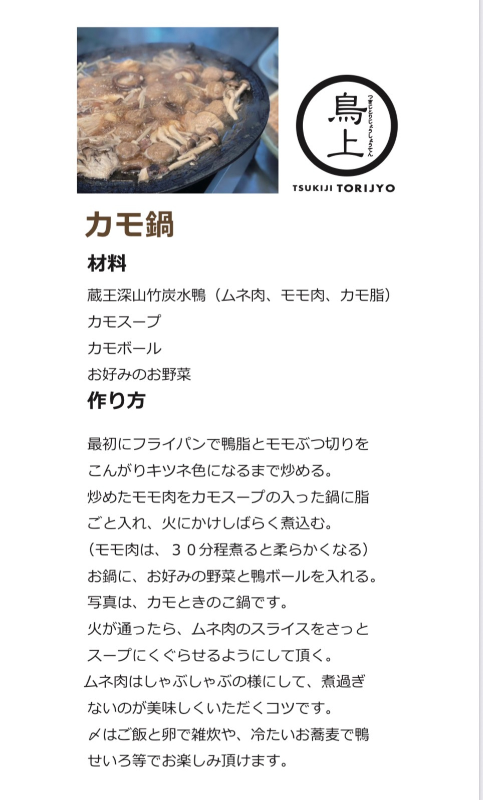 濃厚な鴨肉ので作る絶品鴨鍋